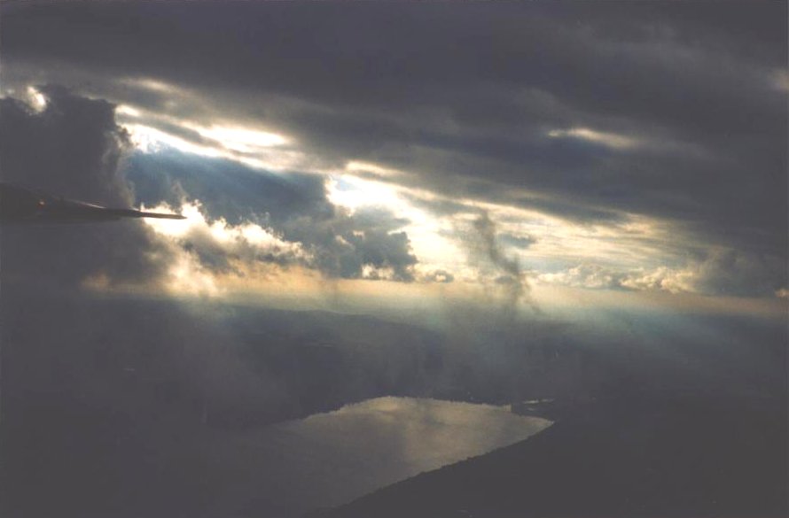 In clear sky past the range of the clouds, I looked back to see the weather that I was