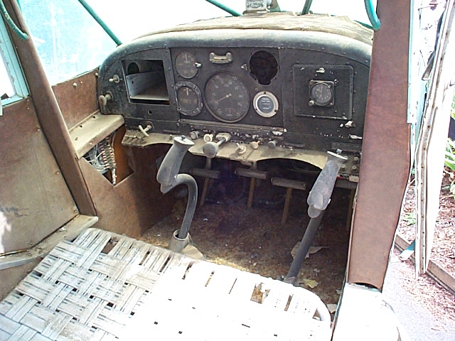 Commonwealth airplanes were a step up from the basic planes of their day, and had an electrical system including a starter. There was an option for radios as well. The "dashboard" was very stylish, with a large center instrument panel flanked by two smaller panels, all shock- mounted into the dash. You can see that the original dashboard was completely cut away (look at the cut line that parallels the upper curve of the dash) and parts of it replaced peacemeal. The lower switch panel, among other items, is also a "midnight modification". It looks like a bunch of kids used it as their "fort".