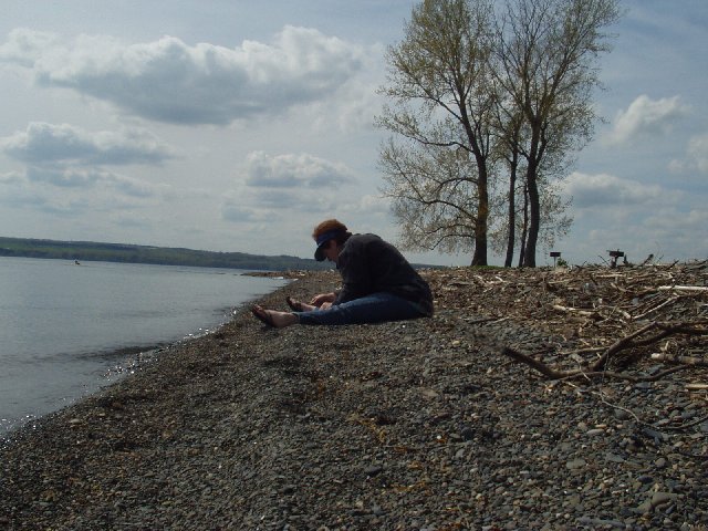 And the little things... My wife picks through the pea- sized gravel at Lodi Point on Seneca Lake, selecting