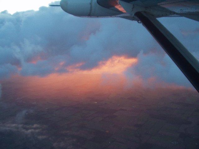 red colors of dawn which are trying to work their way through and around it. As I flew along and watched the colors and the cloud change,